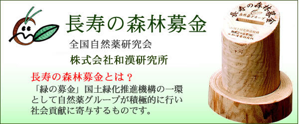 この寄付につき社団法人国土緑化推進機構(以下、国土緑推という)との間に合意ができ、「自然薬グループ長寿の森林募金」として実施することとなり、各取引店の店頭で募金活動を行っております。
