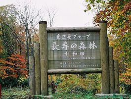 標高約500m、ブナ・トチ・キハダ等広葉樹を中心とした森林で、四季折々の風情を楽しめる森林です。観光道路(樹海ライン)沿いに案内看板を設置してありますので、冬季も看板は見えます。山歩きするのは4月下旬~11月初旬が最適です。春はタケノコ採り、秋はキノコ狩りの人で賑わっています。遊歩道予定地にはまだ案内標識等の整備ができていませんので、林道(自動車で乗り入れ可能)沿いの景色をお楽しみ下さい。観光名所「十和田湖」へは車で20分程のところです。